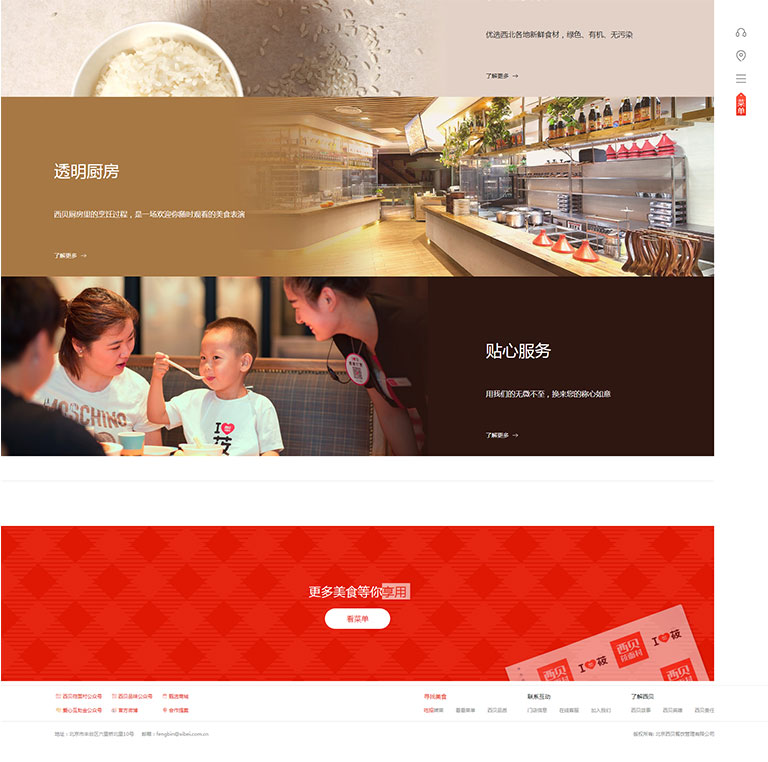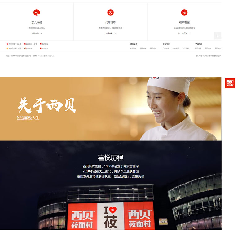 西(xī)貝莜面村(cūn)作(zuò)為(wèi)極β∑£具地(dì)方特色的(de)知(zhī)名餐飲企業(yè),其官網形象與品牌定位保持高(gāo)度≤λ一(yī)緻,以紅(hóng)色為(wèi)主色調,鑄造誠信、熱(rè)情、美₩φ(měi)味、時(shí)尚的(de)西(xī)北(běi)菜品牌視(shì)覺盛宴。