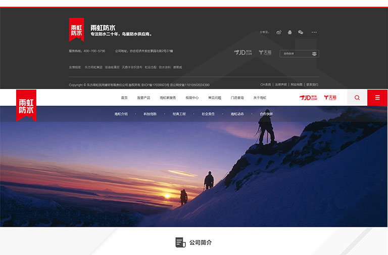 不(bù)僅在設計(jì)上(shàng)體(tǐ)現(xiàn)雨↑π←γ(yǔ)虹防水(shuǐ)品牌的(de)尊貴與穩重的(d•§e)內(nèi)涵。同時(shí),技(jì)術(shù)上(shàng)為(wè"✘< i)其規劃了(le)營銷型網站(zhàn)的(de)管理(lǐ)體(t↓♥☆ǐ)系。